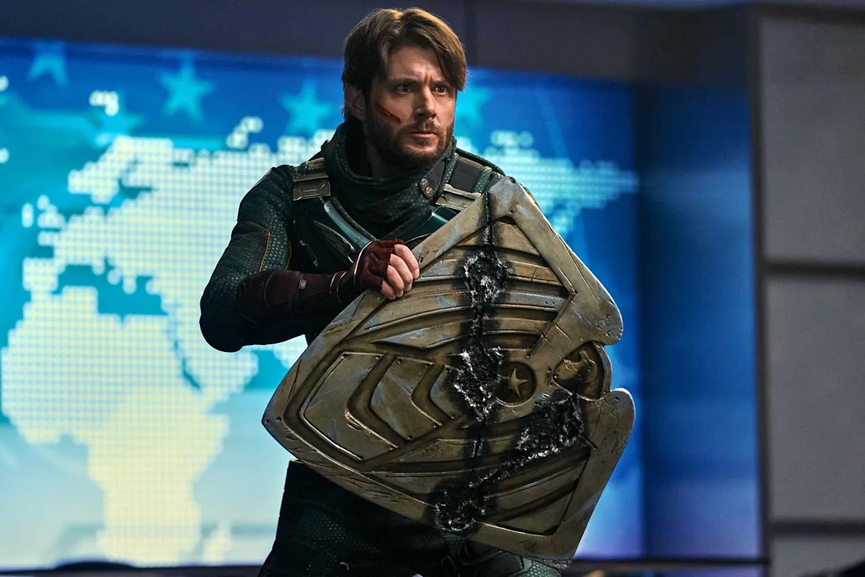 «Последний день съемок первого сезона Vought Rising, — сказал Эклс в начале ролика, прежде чем перевести камеру на свой костюм. — Нужно надеть это еще раз — ботинки, штаны, — но я не могу сделать это прямо сейчас, потому что мне нужны три человека, чтобы влезть в эту штуку».